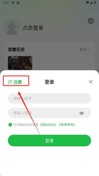3、然后点击注册的图标。