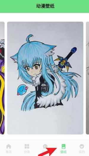 2、进入“动漫壁纸”页面,浏览并选择喜欢的动漫插画,轻松设置为手机壁纸,操作十分简单。