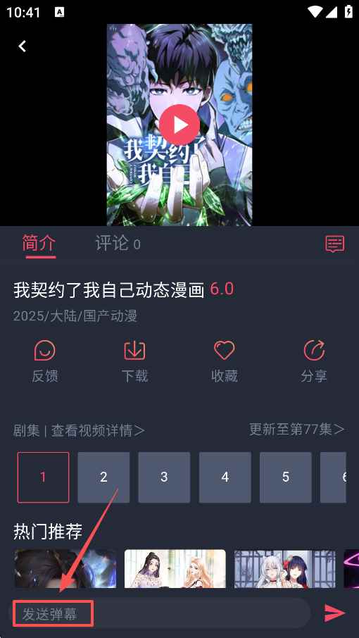 1、选择感兴趣的动漫进入播放页面。